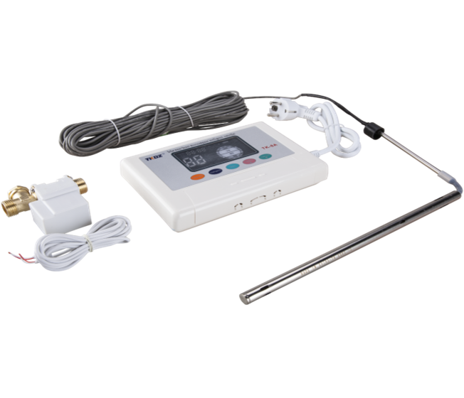 controller, teaca cu doi senzori (temperatura si nivel apa) si electrovalva alimentare.